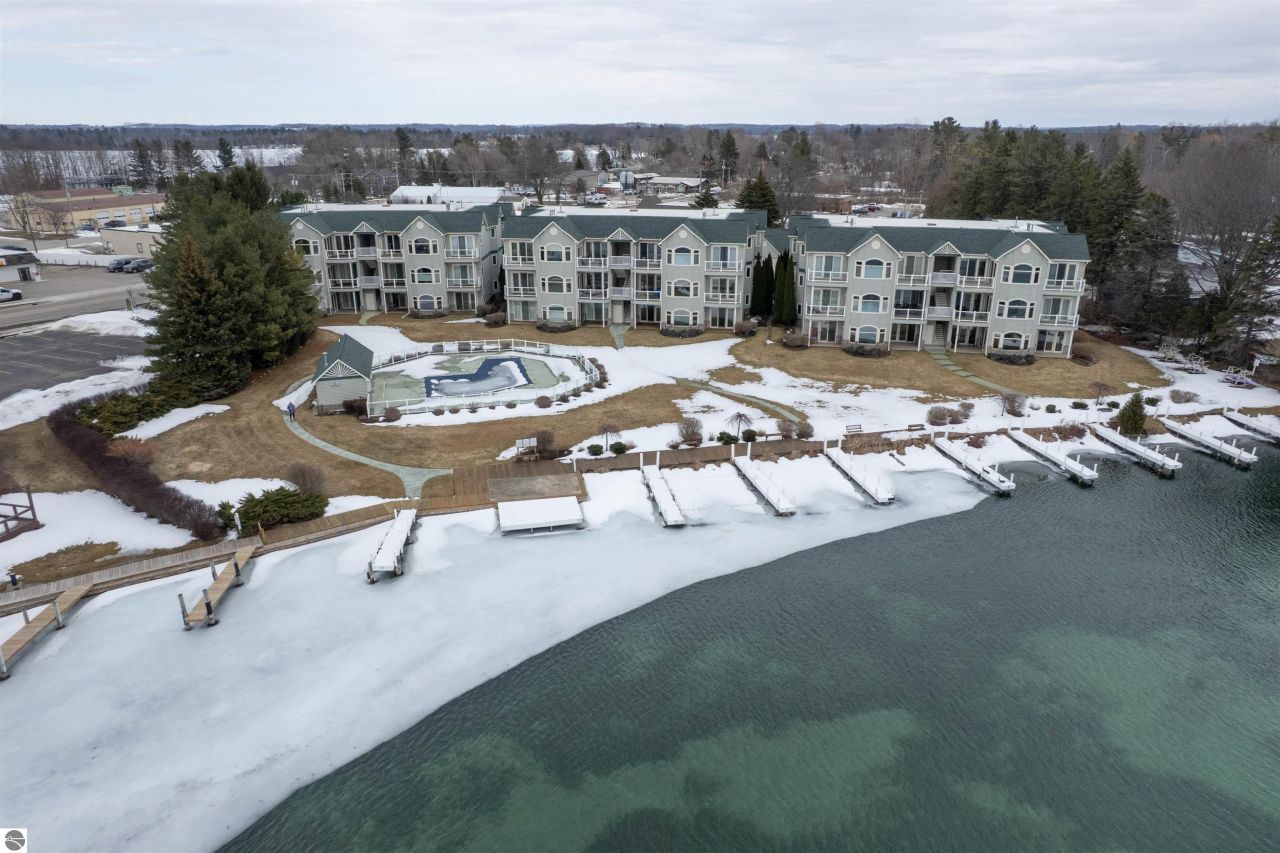 Fabulous Elk River waterfront condo living with beautifully appointed first floor unit located in the quaint waterside Village of Elk Rapids! This immaculate, turn-key condominium features a wonderful open floor plan with tasteful décor and thoughtful upgrades throughout. The inviting living room showcases a custom-designed fireplace, creating a warm and welcoming focal point for the space. The kitchen is equipped with Kenmore Elite appliances and a customized counter-height island that offers both functionality and comfortable seating for gathering and entertaining. The spacious primary bedroom offers peaceful water views along with direct access to the private patio, a large walk-in closet, and a spacious private bath. With its thoughtful layout and first-floor convenience, this home offers comfortable and easy waterfront living. Just steps from the in-ground pool and your private boat slip with direct access to Elk Lake, Torch Lake, and the entire Chain of Lakes, making boating, kayaking, and paddleboarding effortless. Located near the charming shops, restaurants, and beaches of downtown Elk Rapids, this is a wonderful opportunity to enjoy Northern Michigan waterfront living. Click on virtual tour link for an incredibly realistic view of the interior!