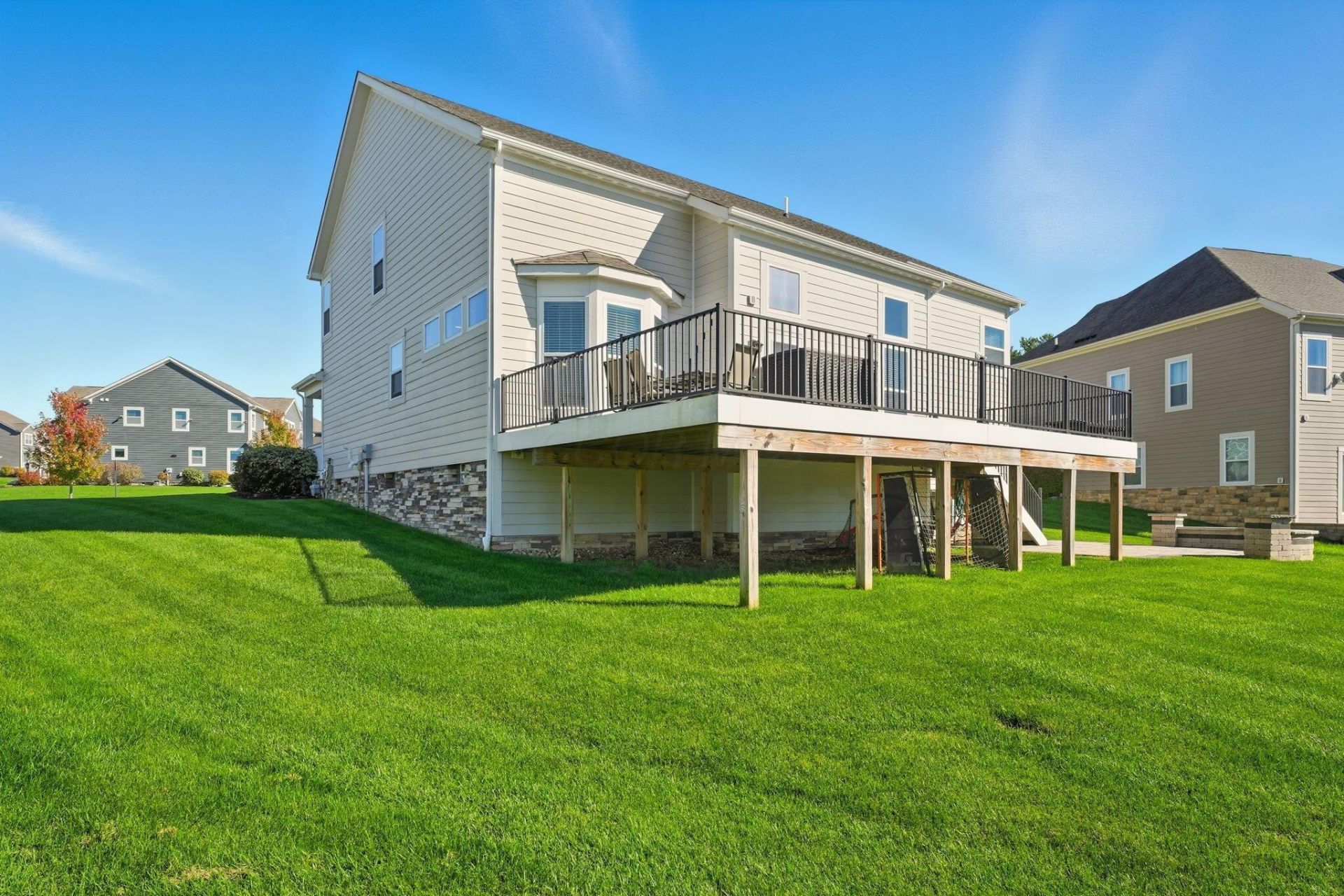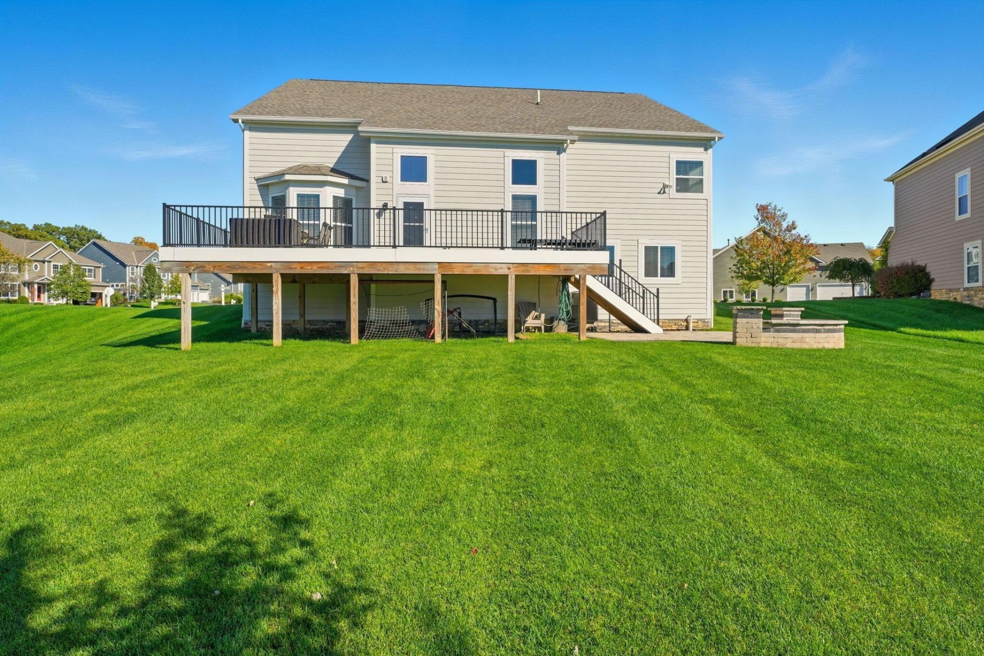 Sanctuary at the Lakes community--where premium finishes meet outdoor living and a top-tier school district. A beautifully appointed 5-level split by M/I Homes (Covington floorplan with thoughtful bump-outs) that checks every box.Inside you'll discover 4 spacious bedrooms (with the option to turn bonus room above garage into 5th), 2.5 baths, bonus room over garage--ideal for a home office, play area, or secondary living room, plus an additional loft space. The smart layout blends open common areas with private rooms including finished 4th level with egress windows. Noteworthy upgrades: kitchen bump-out for added space and light, finished garage floor, drywall in the garage (rare in its original build), an irrigation system, and a dry-proofed crawl space with added sump pumps for peace of mind.Step outside to your personal retreat. A brand-new Trex deck invites you to enjoy morning coffee or evening sunsets, while below a custom stone-paver patio ready for a firepit, all overlooking a huge green space--perfect for relaxing or entertaining. The sidewalks wind through the neighborhood, and you'll have access to a golf-cart path connecting directly to the adjacent The Lakes Golf & Country Club--an 18-hole championship course with racquet sports, bocce, year-round aquatics and a clubhouse for active, social living.Location is everything: easy access to Polaris, I-71, Uptown Westerville, the Community Center, Hoover Reservoir, Alum Creek State Park, and the walking trails, parks and greenspace that make this community lifestyle-friendly. With the prestigious Olentangy Local School District, it's the full package.Add to that the oversized 3-car garage, tailored for storage, hobbies or workshop space--and you have a home that brings together luxury, convenience and community. 4950 Sanctuary Drive isn't just a place to live--it's a place to love.Basement is plumbed for a full bath.*3D walkthrough and detailed floorplans under documents