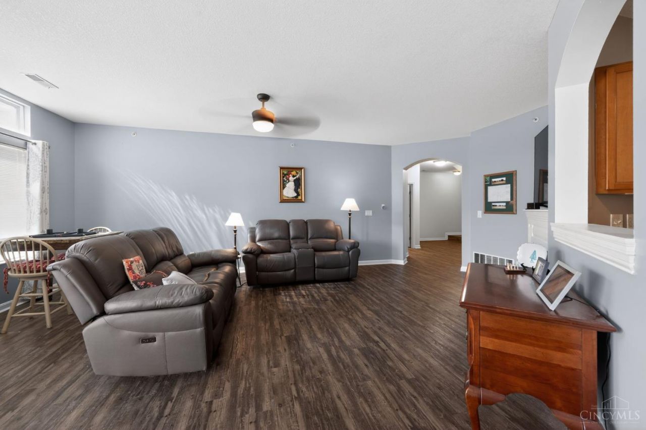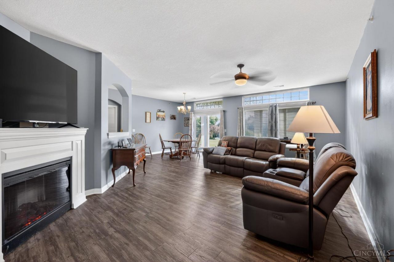 This spacious one level living condominium boasts impressive 9-foot ceilings throughout, multiple elegant archways, and luxury vinyl flooring for a bright open, and modern feel.The open floor plan features a large living room (21x13), formal dining room,spacious kitchen with stainless steel appliances,and a private study/den perfect for home office or guests. Generous primary suite with a very spacious second bedroom. Enjoy the walkout feel and serene views of the community's well manicured landscaping. Attached garage. Private entrance from the garage and a private side entrance.Built in electric fireplace in the Living room. Conveniently located 15 minutes from downtown. Only 25-30 minutes from CVG airport, and only 30 minutes from Kings Island.